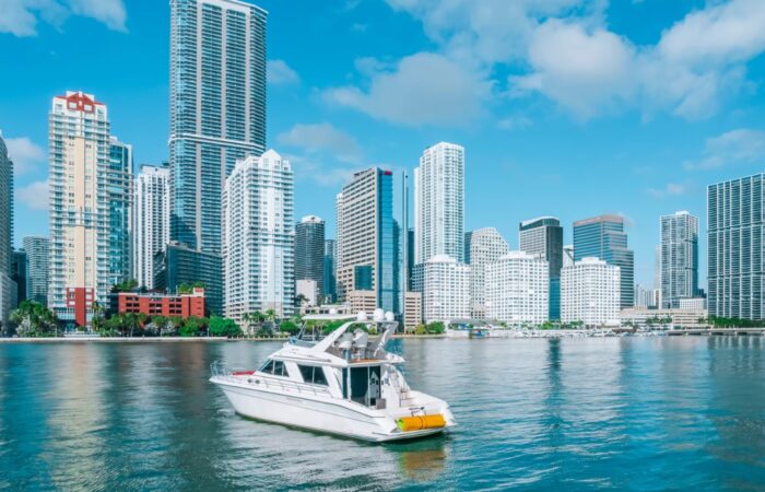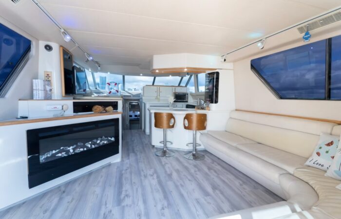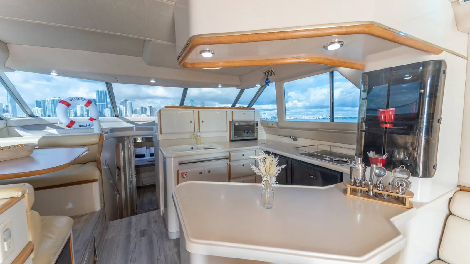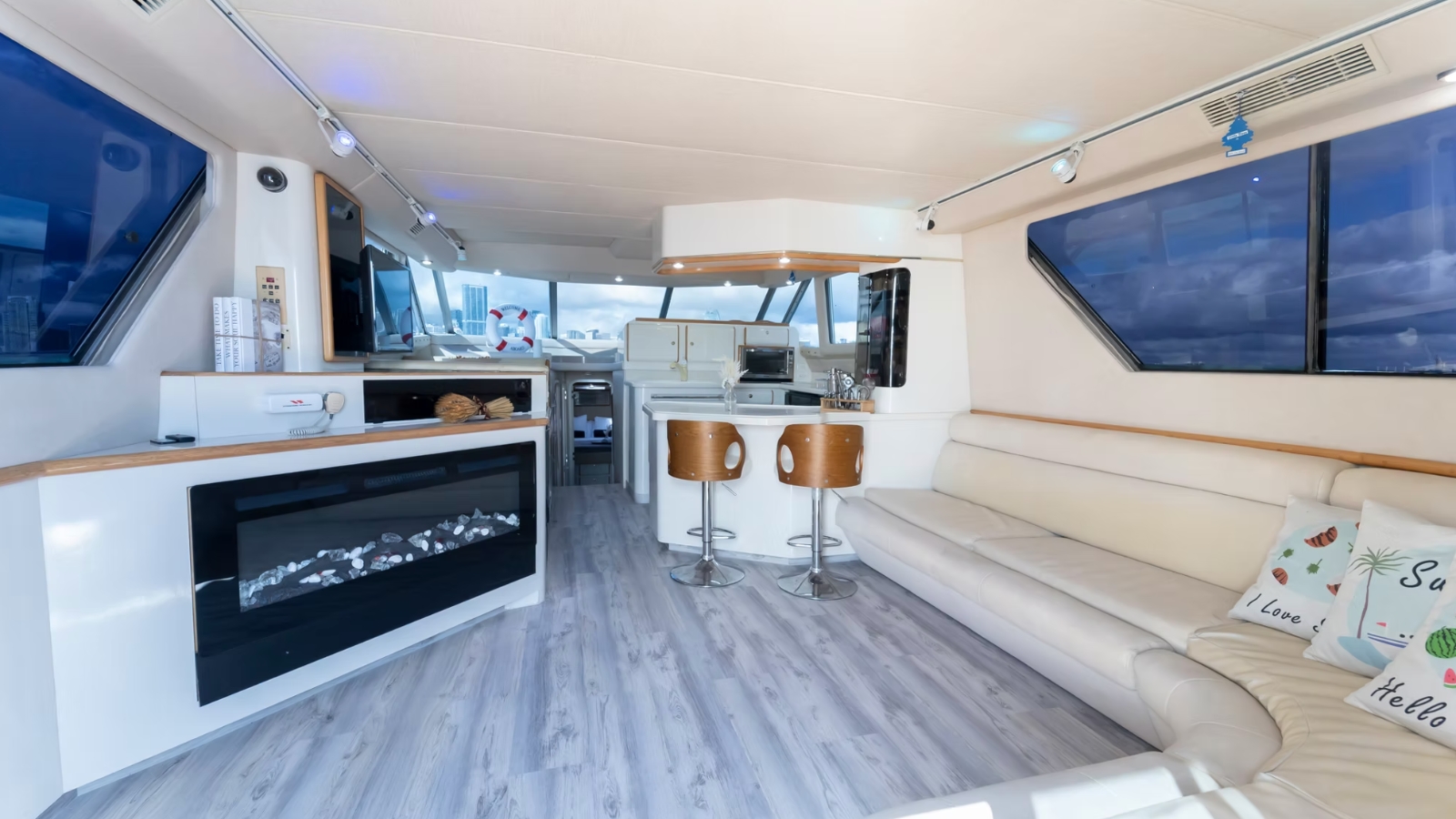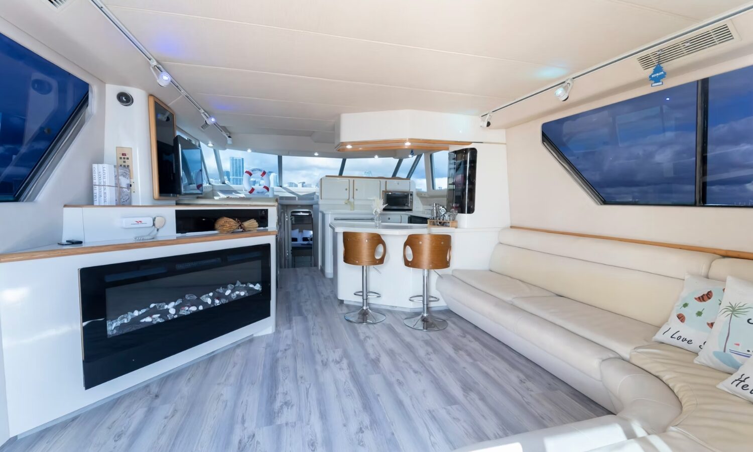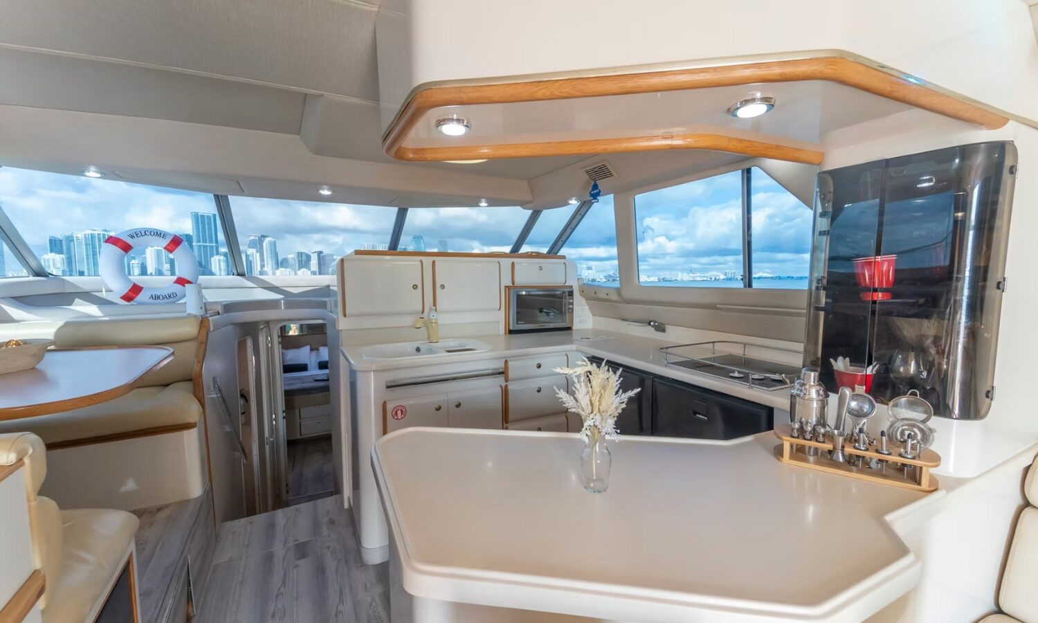 With a spacious flybridge providing panoramic ocean views, expansive sun decks, plush lounge areas, luxurious en-suite cabins, a fully equipped galley, and a high-end entertainment system, the Epic II 60′ delivers the perfect blend of relaxation and adventure. Whether you’re planning a Miami yacht party, a sunset cruise, or a weekend escape, this yacht ensures an exceptional yachting experience.